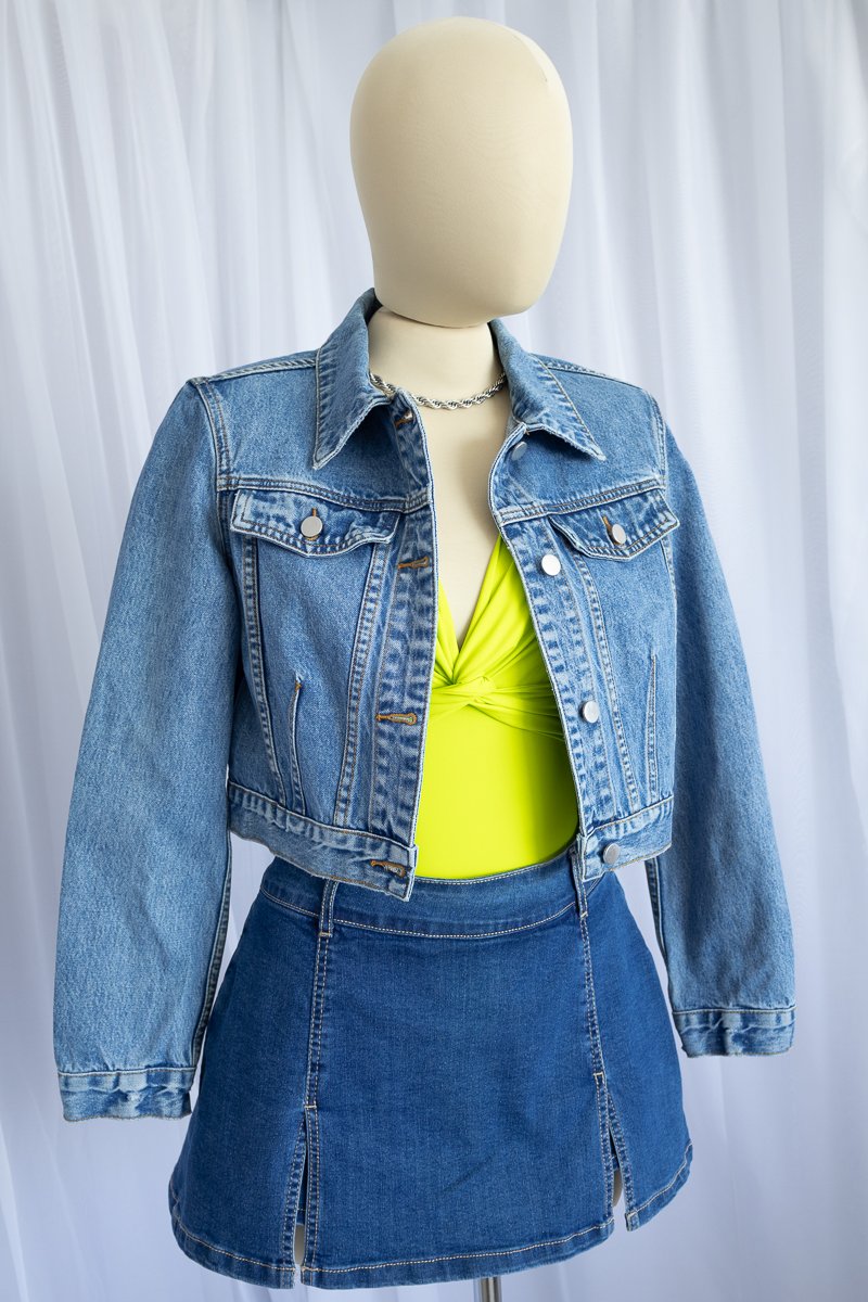 Mezclilla con stretch.